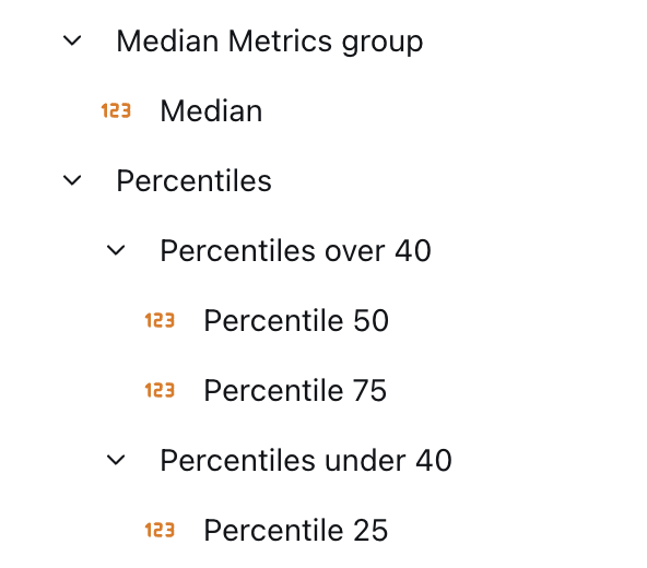 You can group related metrics and dimensions together using the model metagroup_details block in combination with the groups property in your .yaml files. You can as well add descriptions to your groups using the property description that will be displayed when hovering over the group label.
