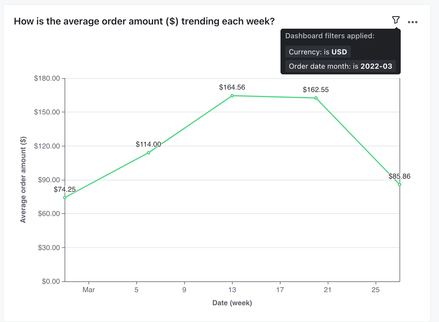 When the date granularity of a chart is changed, you can hover over the indicator to see the date dimension that was affected: