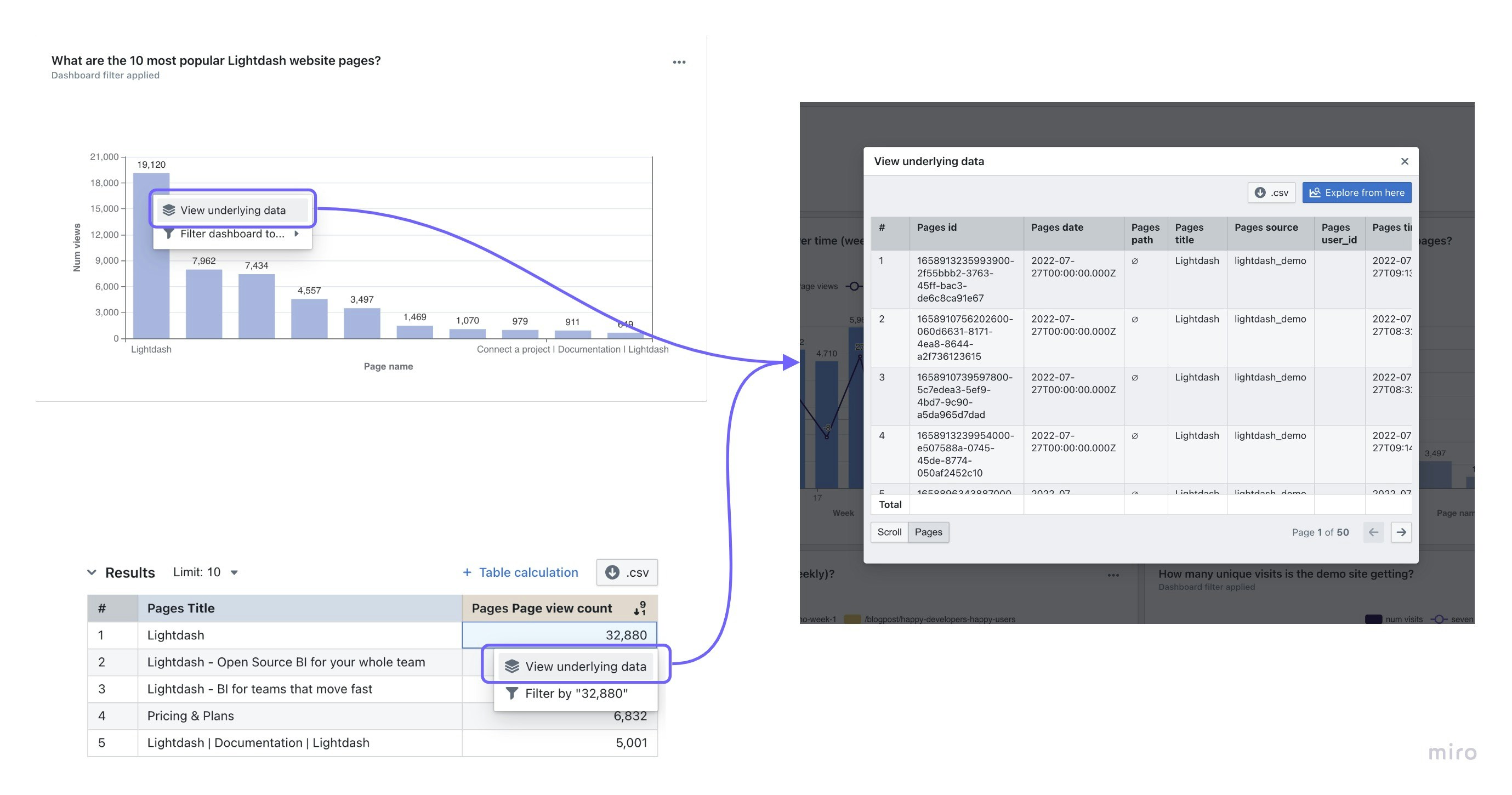 By default, we show all of the dimensions from the Table when you clickView underlying data. If you have fields from a joined table included in your results table, then we’ll also show you all of the fields from the joined Table.