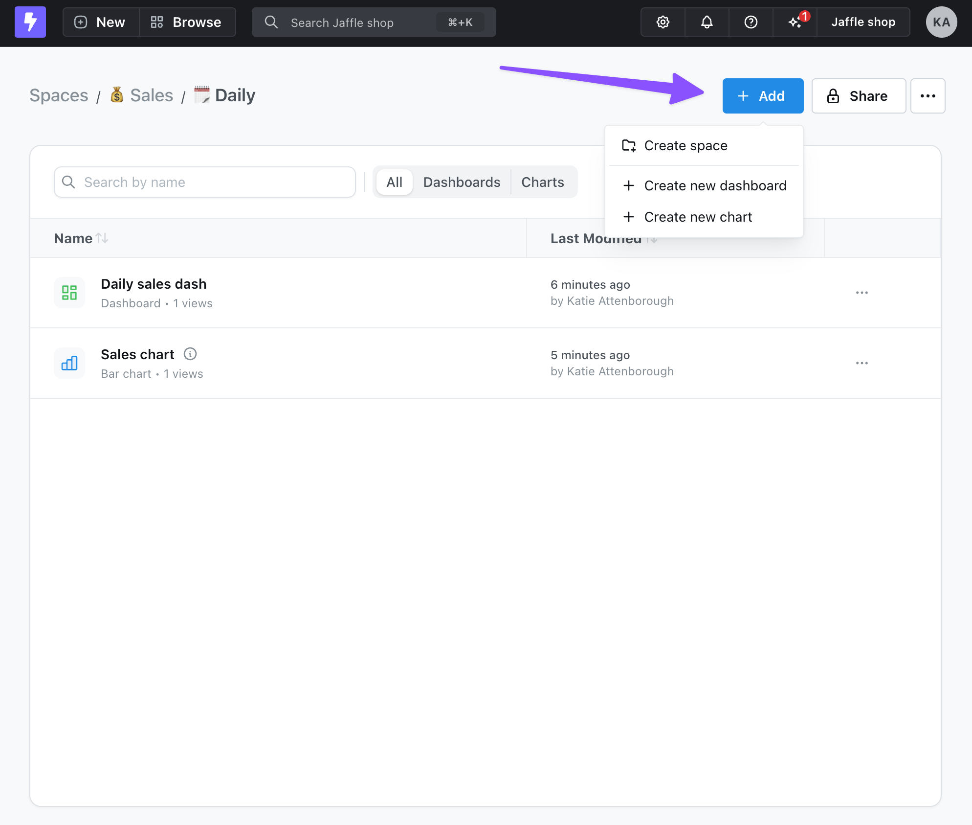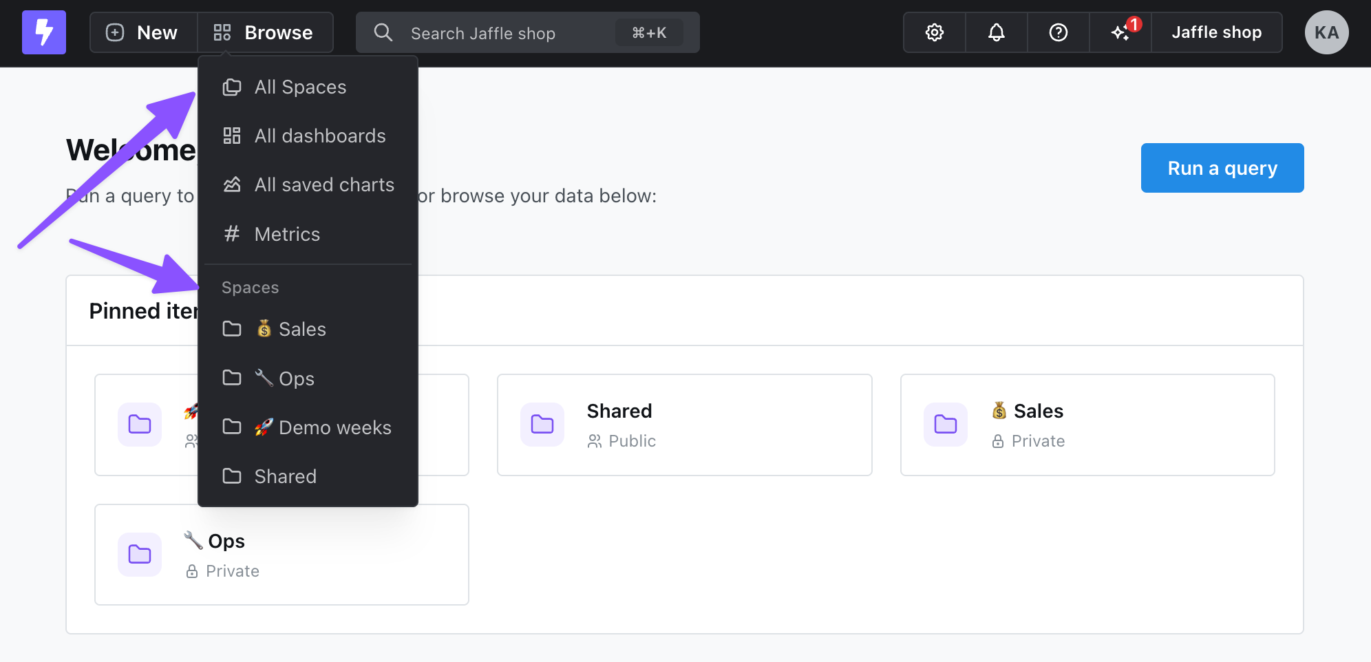 Browse or you can click on the Lightdash icon and select your Space from the homepage.